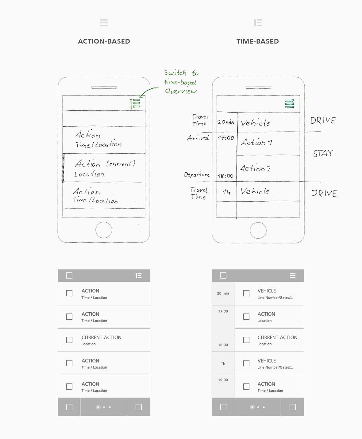 The chosen persona is described as open-minded but anxious in terms of unexpected incidents. Due to the given profile, the design is providing a solid appearance, while offering many control-items.