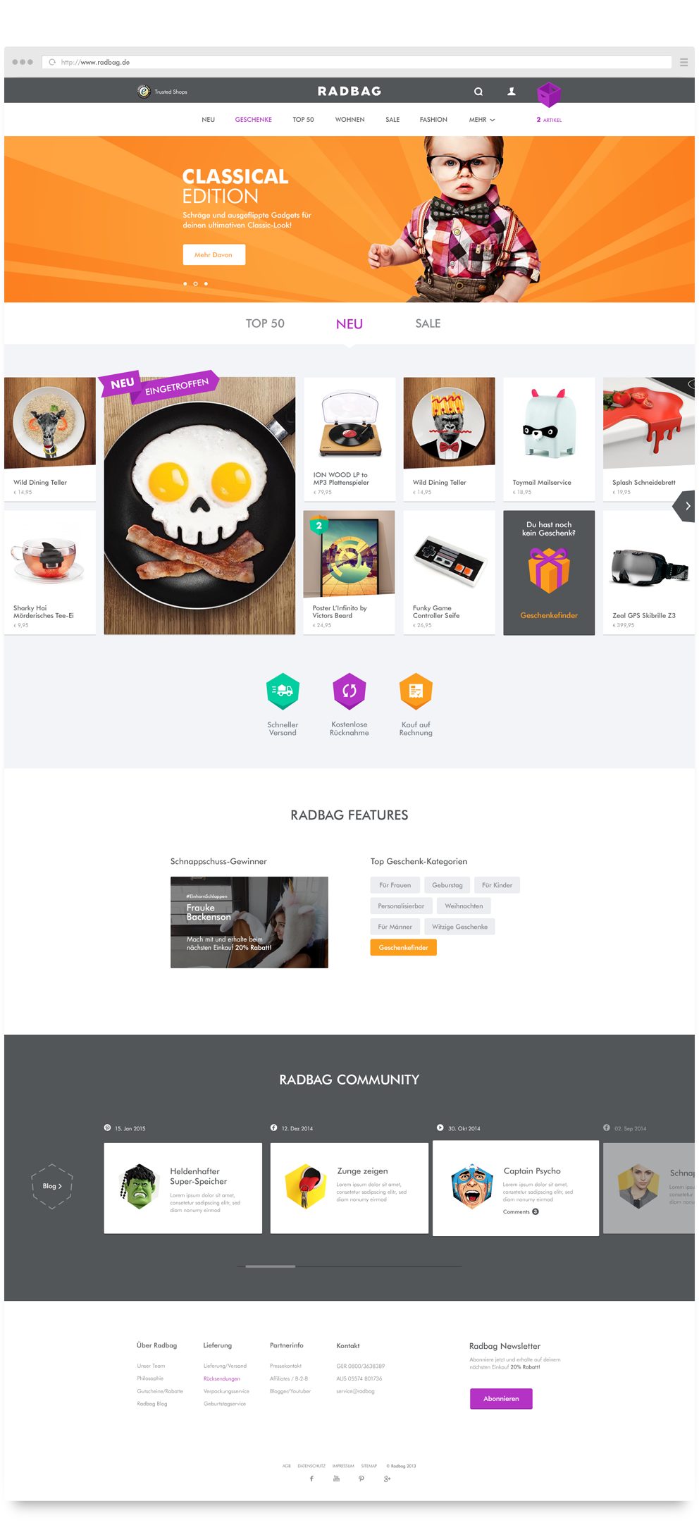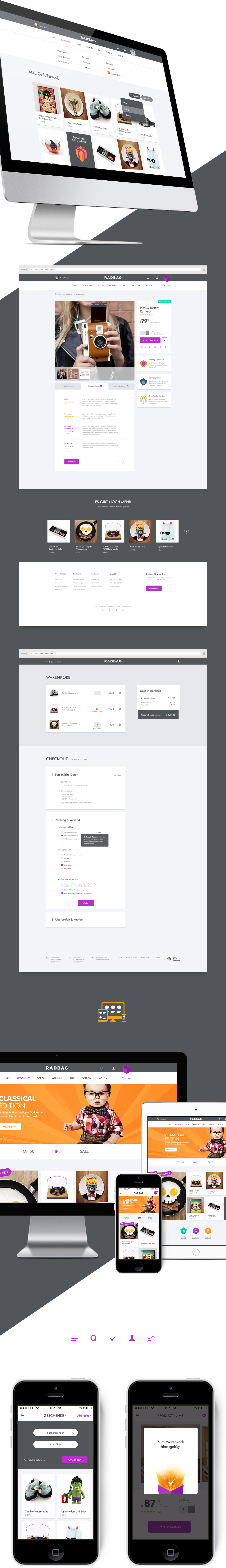 Radbag stands for crazy and funny products, combined with a slightly over the top view of things. Aiming for the mobile market, the existing webshop was redesigned for a responsive approach.