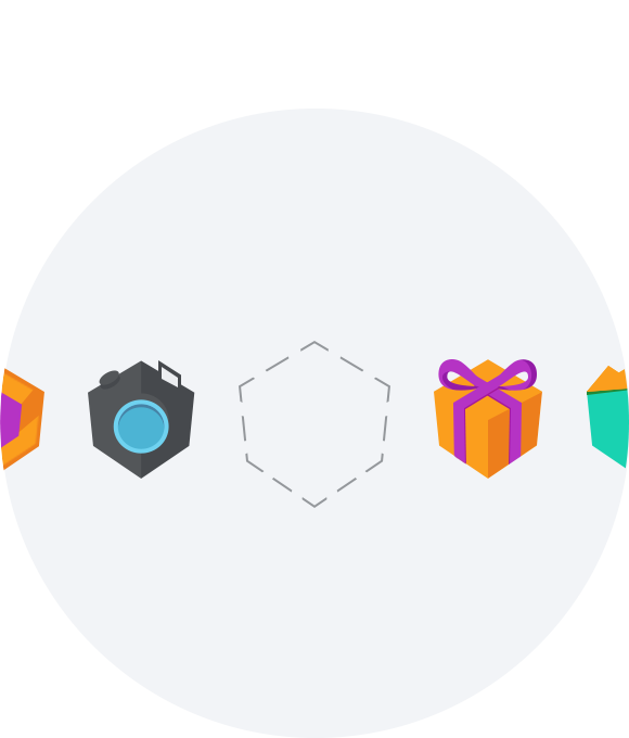 A slightly modified hexagon serves as basic shape, which appears throughout the layout. With the Radbag shopping bag as starting element, several other icons, such as gift box or camera evolved from it.